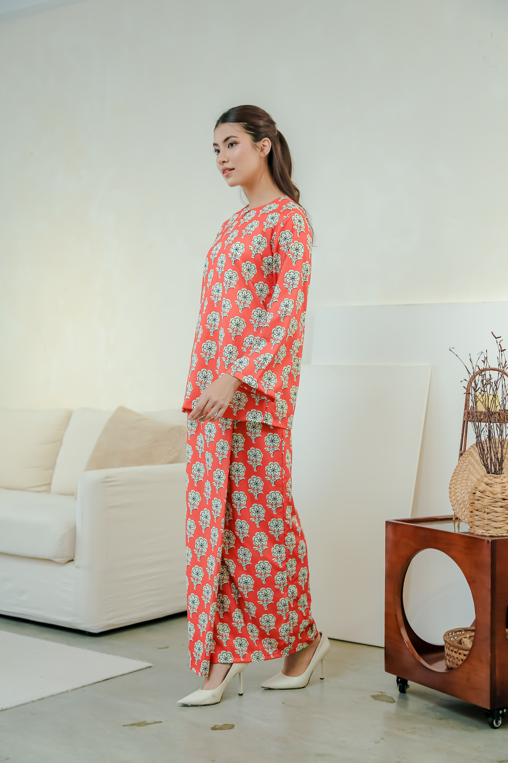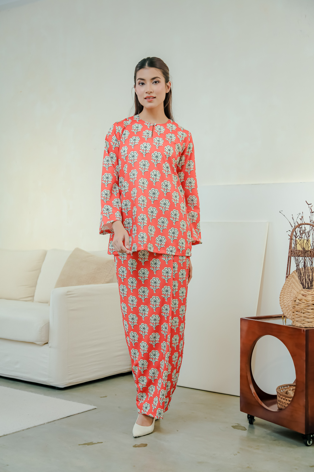 • Lengan baju panjang straight-cut (seperti digayakan model)